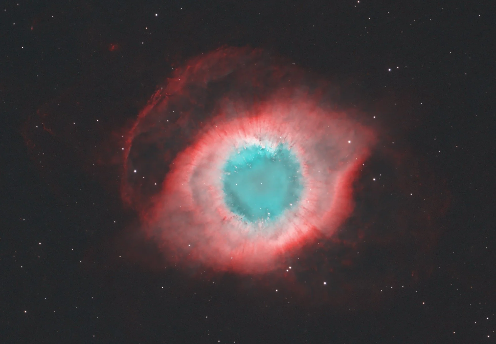 Helix Nebula (NGC 7293) in HOORGB Blend from Starfront Observatories. Link to image details at Astrobin.