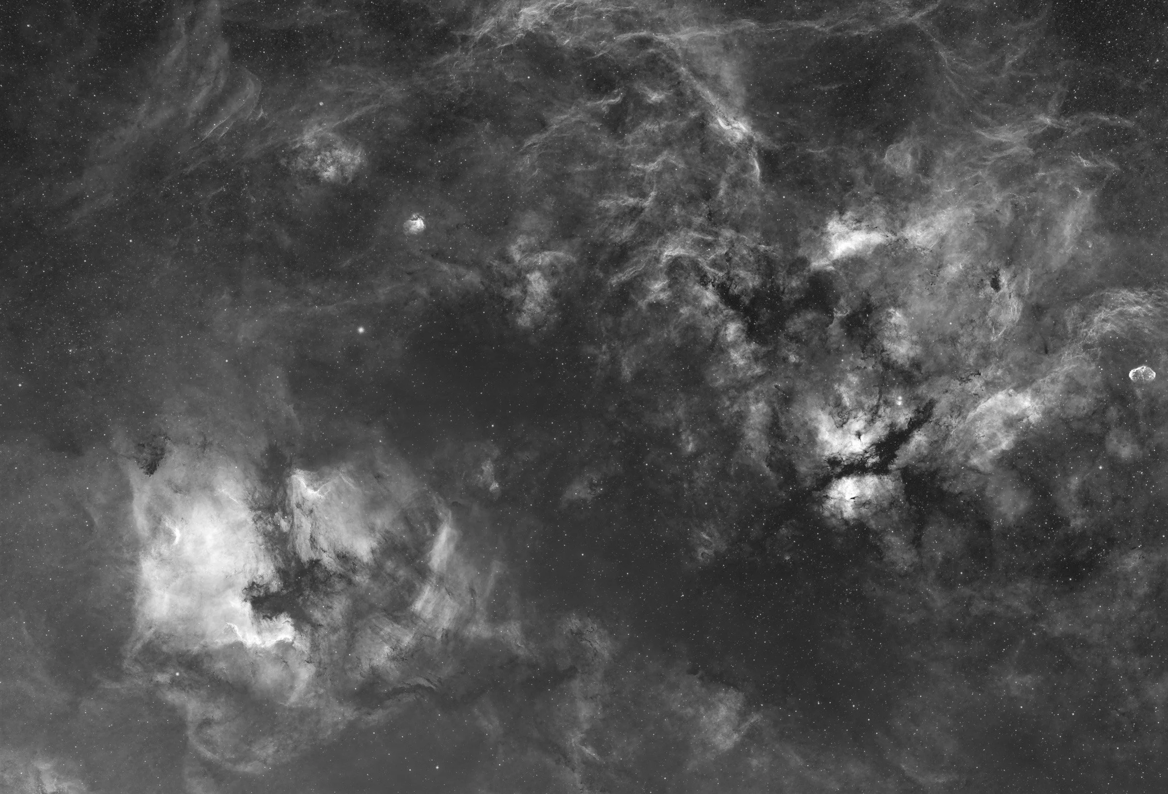 Part of the Cygnus constellation in Hydrogen Alpha wavelength. Adding O3 and SII data when clouds permit.